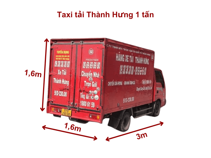 1.2 tấn | 3m x 1.6m x 1.6m | 450.000 đ | 20.000 đ | 100.000 đ/giờ |