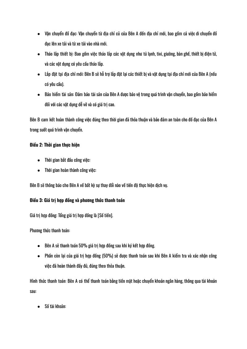Ngoài phạm vi công việc, Dịch vụ - Kubet - Kubet - Kubet - Kubet - Kubet - Kubet - Kubet vận chuyển cũng cần được mô tả chi tiết trong hợp đồng. Các yếu tố như phương tiện vận chuyển, cách thức bảo vệ đồ đạc trong suốt quá trình di chuyển, cũng như các Dịch vụ - Kubet - Kubet - Kubet - Kubet - Kubet - Kubet - Kubet bổ sung như tháo lắp đồ đạc, cần được làm rõ.